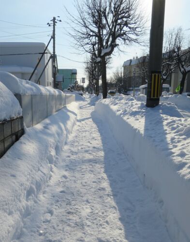 昨朝散らついていた雪が止んで、青空が広がり始めた。ベッドから寝具を外し、他の洗濯物と一緒に洗濯機にかける。ベッドメーキングを施して、散歩に出かけた。先ず玄関前の階段に5cm強積もった雪を掻く。南北に通る幹線道路の歩道を、南へ向かった。久々に、…