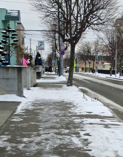 昨日は気温が上がって、最高気温4度近くになった。朝食時に日曜日夕食担当の姪から、今日出掛けるので担当を変わって欲しいとの申出があった。9時半過ぎに、散歩に出かけた。道曜日に回る南へ向かう。午前中は未だ気温が上がって居らず、歩道は前日溶けた状…